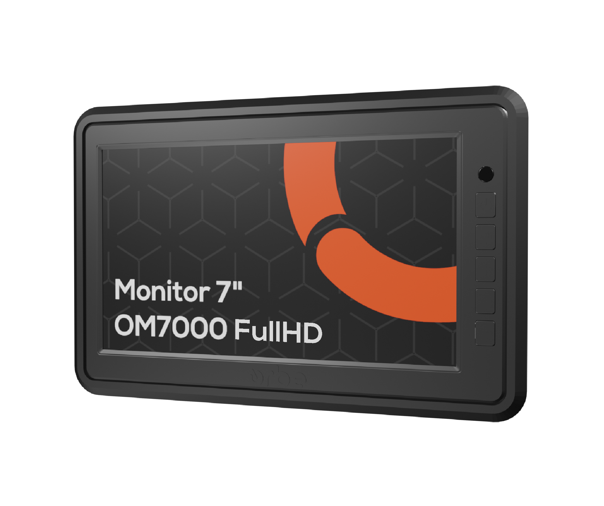 Monitor IPS Widescreen veicular com tela de 7" FullHD. Possibilidade de embutir ou com suporte, 3 ou 4 canais.