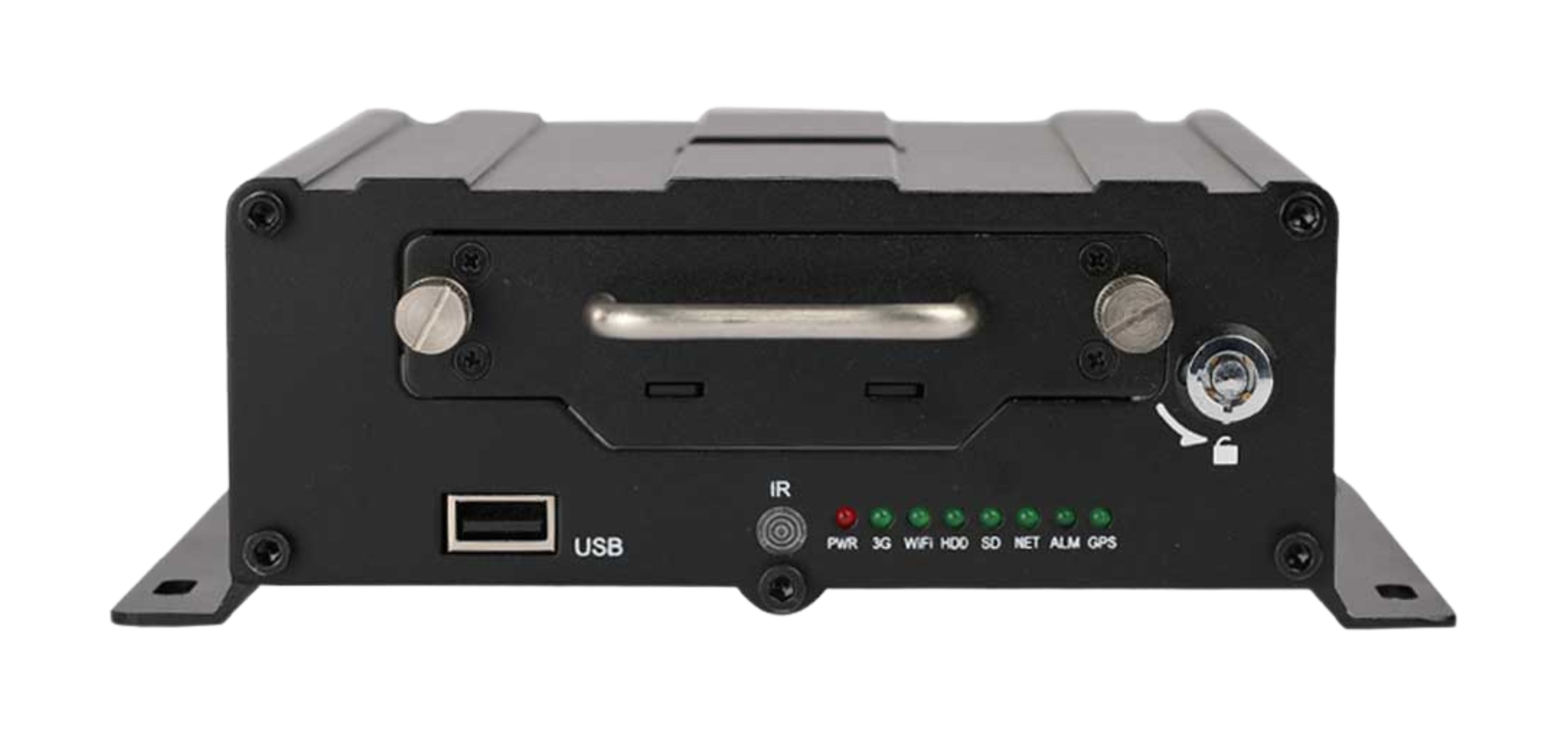 MDVR veicular, gravador de imagens com 4 canais analógicos/AHD e uma câmera IP.